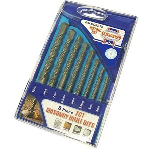 Faithfull standard masonry bits are for use in chucks up to 13mm capacity and suitable for general purpose drilling including bricks, blocks and cement render when used in an impact or percussion drill. Roll formed and treated body with a heavy-duty Tungsten Carbide tip and fast spiral for quick waste removal. Set of 5: 5, 5.5, 6, 6.5 and 7mm. Set of 8: 4, 5, 5.5, 6, 6.5, 7, 8 and 10mm.Set of 8. Sizes 4mm, 5mm, 5.5mm, 6mm, 6.5 mm 7mm, 8 mm and 10 mm.