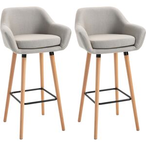 Let modern elegance take the forefront in your home seating, thanks to this set of two bar stools from HOMCOM. Linen upholstery is stylish and allows the skin to breathe naturally. Solid wood legs for full support, with lower footrests to elevate the lower body. Tub shaped seats add to the style, with a padded seat for comfort. Mid-rise backs offer a touch of support when you lean back. Comes in a set of two for a matching dining area look.Features:Set of two elegant and softly curved chairs which look anywhere in your homeSolid wooden legs for support as you sit - tall length to matching higher spotsDeep and wide cushioned seat for comfort, combined with a high back and armrests for supportStylish linen upholstery, allows the skin to breathe naturallyMaximum load 120kg, assembly required