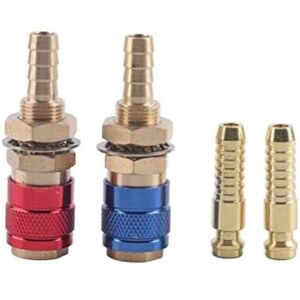 Welding Type: Water/Gas Quick Connection between welding torch and welding plug. Material: The connector is made of high-quality brass, which is not easy to leak and durable. It has strong wear-resistant performance, thus durable in use. 100% brand new and high quality. Suitable for: Recommended for connecting M8 inner diameter pipe Advantage: These quick connectors are easy to install. Application: The gas connector can be used for MIG TIG welding torch