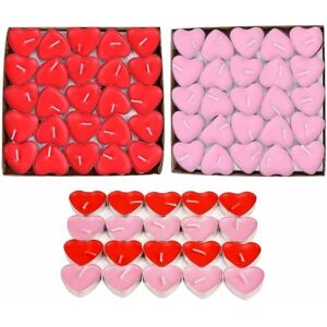Package contains 50 red candles + 50 pink candles. Beautifully presented heart-shaped tea lights that provide approximately 2 hours of flame. Candles are made of paraffin / vegetable wax, smokeless, fragrance free, can burn well while providing a clear flame. Each size: 4 x 3.5 x 1cm (L x W x H), weight: 570g. These tea lights can create a romantic and happy mood. Perfect for Wedding, Valentine's Day, Birthday, Halloween pumpkin, Christmas table decoration, dinner party or family events etc. Tea flame has beautiful color and romantic effect, great for party, dinner table, votive, assembly, living room, bedroom, bathroom, garden. Shiny decorative candle for many events and festivals. Just spend little money to achieve a fantastic effect, your families and friends will praise your efforts. - Tea flame has beautiful color and romantic effect, great for party, dinner table, votive, assembly, living room, bedroom, bathroom, garden, garden. - Shining decorative candle for many events and