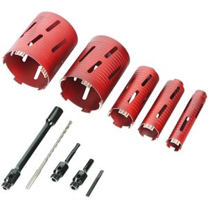 A selection of 5 premium grade diamond core drills for fast drilling into masonry, bricks and blocks. During drilling, the self-sharpening diamonds will not only give a clean and precise hole but also increase lifespan. Suitable for wet and dry cutting. Su