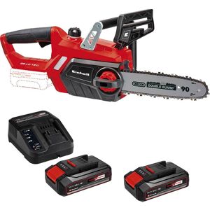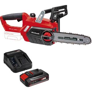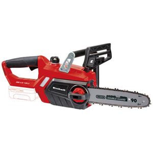 The Einhell GE-LC 18 Li combines the outstanding quality of an Einhell product with OREGON cutting performance. Featuring a high-quality OREGON guide bar and chain, this cordless chainsaw is user-friendly, reliable and shares battery compatibility with all tools on the Power X Change battery platform. This dependable, handy chainsaw is ideal for pruning or felling small to medium-size trees, making firewood and trimming or cutting up construction timber. Kickback protection and an instant-reaction mechanical chain brake protect you while you are working with the chainsaw. The chain stops right away if kickback occurs. A catch bolt holds on to the chain if it jumps off the rail. The rugged metal stop claw keeps the saw stable for your added safety and working comfort. The ergonomic handle gives you a firm, comfortable grip, and the chain can be tensioned or removed without need for additional tools. The chain is lubricated automatically while in use and the large opening in the oil reservoir eliminates the need for a funnel. Specifications • Battery Voltage: 18v • Battery Type: Power X Change Lithium Ion • Bar Length: 250 mm • Max Cutting Length: 23 cm • Chain Cutting Speed: 4.5 m/s • Oil Tank Capacity: 200 ml Features & Benefits • Cordless 18v chainsaw • Runs on a Power X Change battery • High-quality chain and bar from OREGON • Tool free chain tensioning and changing • Ergonomic handle • Sturdy stop claws made of metal • Kickback protection with mechanical instant chain brake • Big filler opening • Automatic chain lubrication • Chain catch bolt Contents • GE-LC 18 Li Solo Cordless Chainsaw • Einhell Power X-Change 18v Li-ion Battery 4ah (x2) • Battery Charger
