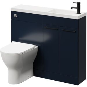 Model Number: WDB92764 Take your bathroom from mundane to magnificent with the Napoli Combination Deep Blue 1000mm Vanity Unit Toilet Suite with Slimline 1 Tap Hole Round Basin and 2 Doors with Matt Black Handles. Unveil the slimline basin with a pre-drilled tap hole, seamlessly blending elegance and convenience. Bid farewell to clutter as ample storage awaits behind the chic brushed brass handles. Crafted from durable, moisture-resistant material, this combination suite is long-lasting and makes for a worthwhile investment. The bold deep blue finish is modern and brings an easy air to your bathroom. The matching toilet unit enhances the cohesive design, ensuring a harmonious aesthetic. Embrace the ultimate in bathroom luxury with the soft-closing toilet seat, providing a serene and noise-free experience. Upgrade your space effortlessly with the Napoli Deep Blue Combination Suite, where style meets practicality. Redefine your bathroom experience and order now! Key features Basin comes