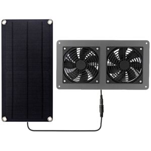 Solar cell: Monocrystalline silicon Solar panel power: 10W Description: Solar panel working voltage: 12V Output port: Female DC5521 DC cable length: 150cm Fan power: 3W Fan air volume: 43.4CFM Fan speed: 2200 (r/min) size: about 360 x 180 x 3mm Material: ABS colour: black Package Contents: 1 x Solar panel 2 x Exhaust fan Only the above package content, other products are not included. Note: Light reflection and different displays may cause the color of the item in the picture a little different from the real thing. The measurement allowed error is +/- 1-3cm.