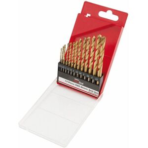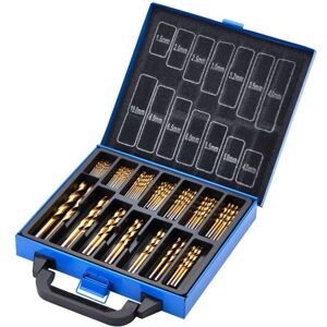 General Description This set includes 99 high-speed steel drill bits coated with titanium nitride for increased durability and performance. The bits are fully ground with a 135° split point for precise centering and to prevent wandering during drilling. Suitable for various materials including steel, non-ferrous metals, wood, and hard plastics. The set is supplied in a sturdy plastic case for easy storage and organization. Technical Specifications Type: HSS (High-Speed Steel) Coating: Titanium Nitride Tip angle: 135° split point Flute: Single Connection: Round shank Sizes: 1.5mm to 10.0mm (various quantities per size) Manufactured according to DIN338 and DIN1414-2 standards Compatibility and Accessories Compatible with standard 10mm and 13mm chucks Works well with cooling agents to extend tool life Installation Insert the desired drill bit into a compatible drill chuck Ensure the drill is set to the appropriate speed for the material Securely tighten the chuck before use Usage Use