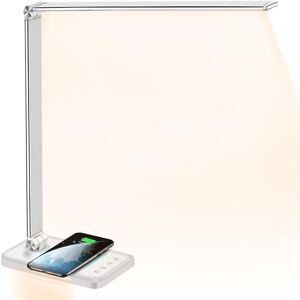 LED Desk Lamp With Wireless Charger, USB Charging Port, Table Lamp With 10 Brightness, 5 Lighting Colors, Dimmable Eye-Caring Desk Lamps For Home Office, Touch Control, 30/60Min Auto Timer,White Ivy Bronx Base Colour: Black