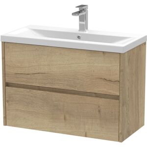 Edge Square Wall Hung 2 Drawer Vanity Unit & Ceramic Basin, 500mm - Woodgrain Autumn Oak - Balterley Compact and stylish, the Balterley 500mm Wall Hung Vanity Unit with Basin is ideal for cloakrooms and en-suites. The wall hung design gives the impression of more space and provides ample storage with it's deep drawers, making it perfect for both smaller bathrooms and busier bathrooms. The unit is manufactured from high quality materials in a textured woodgrain Autumn Oak finish. The floating design maximizes floor space while adding a sleek, modern statement. The wide basin includes a mid-edge profile with flat borders and a sloped bowl for everyday ease, plus a single tap hole and generous depth. Product Highlights: Textured woodgrain finish: Crafted in a deep Graphite Grey textured woodgrain, this vanity unit adds warmth and natural character while enhancing modern bathrooms with a premium designer look. Mid-edge ceramic basin: The basin features a refined mid-edge design with flat