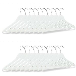 Wooden Coat Hanger Set, Pack of 20 Clothes Hangers for Trousers and Shirts, h x w x d: 23 x 44 x 1 cm, White - Relaxdays