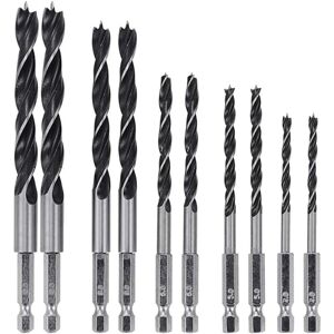 HSS Wood Drill Bit Set (Hardness below 25°), 4-10mm Wood(This product is only suitable for wood, please do not use it for metal.) 5 Sizes of Drill Bits Sit: 4mm, 5mm, 6mm, 8mm, 10mm; Shank: 6.35mm(1/4"). Cuts holes perfectly without chipping or breaking the material. The drill hole is smooth and complete, it will not produce shock phenomenon, easy to position. 2pcs Drill Bit Sets Suitable for 6.35mm/1/4" Hex Shank Power Tool Electric Screwdriver