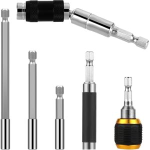 Our flexible magnetic swiveling bit tip holder bar set includes 1 -up magnetic pivot drill bit holder 1 ring magnetic drill bit holder, 1 magnetic rotating drill bit holder, and 3 drill bit extensions in different sizes, the drill bit holder extensions for your daily use tool. Our magnetic swiveling bit tip holder securely holds drill bits or drill bits, even at high speeds, ensuring screwdriver bits stay stable in place, our quick-release nut driver can hold any 1/4inch drill bit, meet your daily work needs Our flexible drill bit extension pivot bit holder set is made of high-quality materials and precision manufacturing, very and reliable even under heavy use, has high hardness, and high torque, is electroplated, and is not easy to rust Our magnetic screw drive guide drill bit tip holder requires no additional tools and the 1/4inch hex handle can be easily replaced by hand. The handle makes changing drill bits a breeze, allowing you to work more efficiently and complete tasks faster