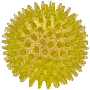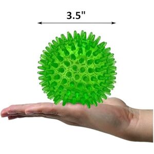 Dogs love the familiar squeaky noise when squeezed! Soft spike tips can be safely squeezed, pulled, and gnawed on. Promotes healthy teeth, gums, and better breath. Thermoplastic Rubber (TPR) material is safe, durable, and excitingly bouncy! Package includes single 3.5" blue toy ball. Great for medium and large breeds, or ambitious smaller pups. Perfect for Playing Fetch Thermoplastic rubber material is soft but durable, which makes it the ideal toy for both indoor and outdoor use. Won't damage floors or walls, and doesn't easily get dirty or wet. Perfect for Chewing What dog doesn't want to chew? Chewing is not only therapeutic, it promotes healthy brain development, better behavior, and cleaner oral hygiene. ball toy Perfect for Larger Dogs Ball measures 3.5" in diameter, which makes it the ideal size for any medium or large sized canine... or a real mouthful for smaller enthusiastic pups!
