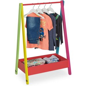 With the children's coat rack, you not only have an overview of the children's clothes for the day, but also support your child's independence at the same time. The children's clothes rack invites boys and girls to put away and take out their favourite outfits and motivates them to dress and undress independently. T-shirts, dresses, shirts and jackets are hung on the coat rack. Other items of clothing such as trousers, socks, caps or even a small rucksack find their place in the storage compartment. Children's coat rack in detail - Overall dimensions H x W x D: approx. 99 x 63.5 x 42 cm - Clothes rail W x D: approx. 58 x 2 cm - Interior dimensions of compartment H x W x D: approx. 8 x 58 x 32.5 cm - Load capacity: approx. 15 kg - Weight: approx. 4.9 kg - Material: MDF, pine wood - Colour: White, grey Free-standing coat rack for the children's room - Children's room coat rack to promote independence - Coat rack with clothes rail and storage compartment - For hanging up and storing
