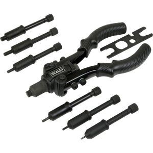 Industrial grade tool for use in garages, agriculture and general workshops. Short-arm design providing effortless functionality and access to restricted space to set rivets up to 6.4mm. Supplied with five interchangeable colour-coded nozzles for all popular rivet sizes. Accepts aluminium, steel and stainless steel rivets in the following sizes: Metric; 2.4, 3.2, 4, 4.8, 6.4mm, Imperial; 3/32", 1/8", 5/32", 3/16", 1/4". Features special profile nozzle for structural rivets and a built-in mandrel collector. Features & Benefits: • Industrial grade tool for use in garages, agriculture and general workshops. • Short-arm design providing effortless functionality and access to restricted space to set rivets up to 6.4mm. • Supplied with five interchangeable colour-coded nozzles for all popular rivet sizes. • Accepts aluminium, steel and stainless steel rivets in the following sizes: Metric; 2.4, 3.2, 4, 4.8, 6.4mm, Imperial; 3/32", 1/8", 5/32", 3/16", 1/4". • Features special profile nozzle for structural rivets and a built-in mandrel collector. • Model No. AK3982 Specifications: Model No AK3982 Brand: Sealey Includes: Nozzles; 2.4mm(3/32"), 3.2mm(1/8"), 4mm(5/32"), 4.8mm(3/16"), 6.4mm(1/4") Length: 325mm Nett Weight: 0.85kg Rivet Types: Aluminium - Yes, Steel - Yes, Stainless Steel - Yes, Structural - Yes
