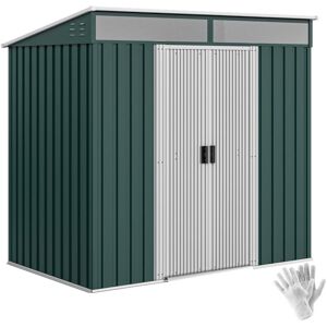 Securely store your garden equipment in the Outsunny 6.5 x 4ft metal shed. Made from resilient galvanised steel, this shed boasts a spacious interior for tools, two windows for natural light and ventilation slots for air circulation. A sliding door with lock and key ensures easy access and security. Specifications: ● Colour: Light Grey Wood Effect ● Material: Galvanised Steel ● Overall Dimensions: 195W x 122D x 181.5/160Hcm ● Internal Dimension: 180W x 97Dcm ● Floor Area: 184W x 108Dcm, 2m² ● Door Dimensions: 73W x 154Hcm ● Vent Dimensions: 22.5W x 9Hcm;● Acrylic Window Dimension: 92W x 20Hcm ● Foundation Kit Size: 176W x 67.5Dcm ● Snow Rating: 40kg/m² ● Item Label: 84H-006V00LG Just so you know: this item ships and arrives in separate boxes. Delivery times may vary with each box. Box quantity: 2 Features: ● Metal bike shed for storing tools, equipment and outerwear ● Includes two additional hooks for hanging items ● Features double sliding doors for easy access ● Comes with lock and