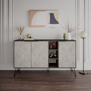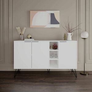 Hairpin legs, a streamlined silhouette, and a two-tone color palette give this sideboard its Scandinavian-inspired appeal. Adding a dash of contemporary style to its surroundings, the sideboard also offers plenty of storage and display space, with three exterior shelves and two cabinets. The inviting surface is just waiting for a favorite houseplant or photograph. SIDEBOARD - Living room buffet, Living room sideboard, Kitchen pantry, 150x43h75 cm Hykkon Colour: Ash Green/Oak