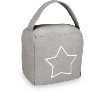 This lovely doorstop is ideally suited to prevent doors from slamming shut or hitting the wall in your home. With its sand filling, it stands steadily on the floor. Thanks to its unusual height, this sack door stop can also be used for higher doors such as patio or balcony doors and even windows. This square fabric doorstop impresses with a modern design and a most decorative star on the front. It does not have to be mounted to floor or wall and can be easily carried and repositioned anytime you see fit due to the handle on the top. Star Doorstop Details - Size H x W x D: approx. 18.5 x 14 x 10 cm - Length without handle: approx. 12.5 cm - Handle W x D: approx. 3 x 18 cm - Weight: approx. 1 kg - Material: Polyester, sand - Colour: Grey - Set of 10 Decorative Floor Bumper - Unusual modern design with star motif - Soft fabric protects doors and floors - Simply rearrange at any time with the practical handle - Ideal for living room, bedroom or children’s room - Extra tall - Great for