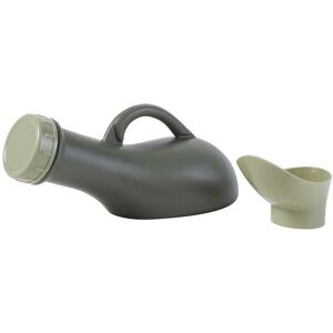 Splash-proof urinal, 1000ml capacity, screw-on lid with foam insert to prevent spills and leaks, keep urine and odors safe inside, ensures reliable durability to reduce the risk of breakages and spills Potty, unisex design, with a removable female funnel adapter, suitable for men and women, smooth and rounded edge to comfortably fit the male and female anatomy, features an army green body that hides the contents inside and a simple 6.5cm wide opening for operation Allows you to relax anywhere, a stress-free solution for the elderly bedridden late at night or travelers stuck in traffic or without regular standing bathrooms, a quick and hygienic way to urinate; also comes with a cleaning brush Portable urinal bottle, made of lightweight and durable PP plastic, odorless, heat-resistant, the urinal bottle has been sterilized at 100 degrees Celsius high temperature, it is safe and hygienic to use, total weight of the urine bottle about 150 grams Easy to use, the built-in handle and long