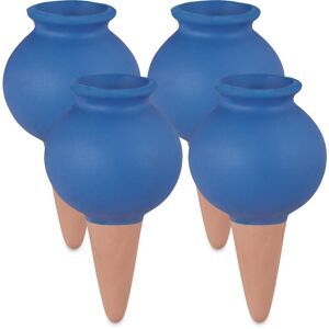 With the set of 8 clay cones, you can automatically water your plants during the day on hot summer days. The permeable clay material releases water to keep the soil moist. Simply sink the watering aids into the soil or dig them in up to the rim and then fill the opening with water. Now you can go about your business worry-free, knowing that your plants are being reliably watered. Please note: The clay tips are not suitable for any type of bottle. Clay tips watering in detail, set of 8 - Dimensions H x D: approx. 12 x 6 cm - Opening D: approx. 2.5 cm - Volume per piece: approx. 100 ml - Weight per piece: approx. 100 g - Material: ceramic - Colour: terracotta, blue Set of 8 clay cones for watering plants - Automatic water supply for plants - For balcony boxes, potted plants, raised beds, and more. - Suitable for flats, terraces, or balconies - Ideal for lazy gardeners at home or in the office - Made of water-permeable clay for controlled release - Not suitable for any type of bottle