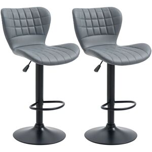 A stylish look for your kitchen dining spots with these HOMCOM bar stools. Faux leather upholstery for a beautiful look. Padded seat and high back to keep you comfortable and supported. A metal base for strength and keeping you supported, the height is adjustable between 63-83cm: set to a level best for you. Completed with a lower footrest. HOMCOM Adjustable Bar Stools Set of 2, Retro Swivel Kitchen Stool with Back, Footrest in Khaki