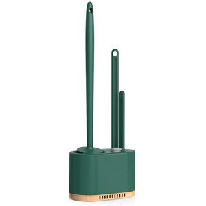 "Multifunctional cleaning kit" This kit includes a round nylon brush, a flat silicone brush and a hand brush to meet diverse cleaning needs. Very suitable for deep cleaning of toilet pipes and cracks, as well as cleaning the the floor drain. " and ergonomic" The long and comfortable handle can effective cleaning without fatigue. Fully sealed handle design prevents wastewater from entering, enhancing durability and hygiene. "Sanitary storage solution" is equipped with a detachable and washable base, which can collect excess water and make the brush dry quickly and keep clean. Intelligent design simplifies maintenance and improves bathroom hygiene. [Easy to install and save space] Installation requires no tools. Use the attached sticker for wall mounting or set it as a separate unit to save space. Ideal for home and RV bathrooms. Color: Green Material: Silicone Package contents: 1 x Toilet Brush 1 x Clean small brush 1 x flat head brush 1 x outer solid stable Only the above package