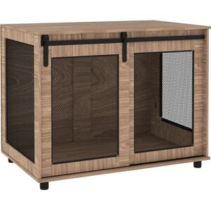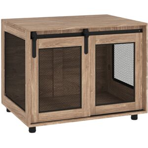 Discover the versatile PawHut Dog Crate Furniture, where functionality meets style! Use it as a cosy dog crate or a chic side table; its particleboard and fine mesh grid design keep your furry friend from chewing. Boasting a dual-door setup, including a stylish barn door, this piece ensures comfort with a three-sided ventilation system and spacious interior for large dogs.- Serves as a dog crate or stylish side table; - Fine mesh construction prevents chewing; - Features barn door and interchangeable latched side door; - Ventilation on three sides prevents feeling confined; - Accommodates large dogs up to 30kg and 60cm long; - Surface cleans easily with just a wipe; - Adjustable feet stabilise on uneven surfaces; - Assembly required;- Colour: Walnut Brown; - Material: Particleboard, Steel; - Overall Dimensions: 98W x 60D x 78Hcm; - Inner Size: 94.5W x 54.5D x 71Hcm; - Front Door: 48.5W x 63.5Hcm; - Side Door: 46.5W x 58Hcm; - Mesh Grid: 1L x 1Wcm; - Feet Height: 5cm; - Maximum Load: 30kg(Inner), 20kg(Top); - Item Label: D02-208V01WN; PawHut Size: 63cm H x 80cm W x 58.5cm D