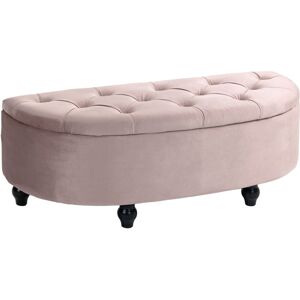 Create an instant focal point in your house with this french-inspired HOMCOM storage ottoman. Lush velvet-feel upholstery, carved wooden legs and button tufting add extra beauty to the design. The cushioned top lid allows you to sit comfortably when temporarily needed, finished with a 111.5 x 37.5cm storage space. Specifications: ● Colour: Pink ● Materials: Polyester and rubberwood ● Dimensions: 42H x 120W x 46Dcm. Storage: 24H x 111.5W x 37.5Dcm. Lid: 10H x Φ6.5cm. Maximum lid angle: 70° ● Weight capacity: 120kg ● Item label: 831-410V70PK Features: ● Elegant design for an elegant focal point in your home ● Padded lid to sit comfortably when needed. Soft closing lid, so it won't hurt you ● Soft and luxe velvet-feel upholstery ● Wooden legs offer plenty of support, carved in a smooth bubble shape ● Maximum load 120kg, assembly required