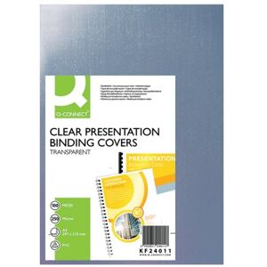 PVC binders provide a clean and clear cover to your documents. 250 micron thickness for great protection. Allows your title page a glossy quality. Cover protects pages from damage. For use with comb binding machines. Supplied in a pack of 100.