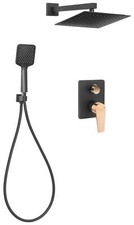 Invena MIDNIGHT line is an innovative and elegant combination of the two most fashionable colours in interior design. Matte black brightened with rose gold creates unconventional jewelry for the bathroom, giving it a sensual character. Specifications: - Type: shower tap; - Material: brass; - Finishing colour: matte black and shiny rose gold; - Ceramic mixer: 35mm.