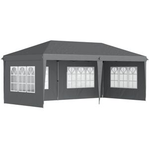 Pull out all the stops next time you have guests over during the Summer, with help from this outdoor gazebo from Outsunny. Offering privacy and protection when needed are the dark grey curtains, which are fitted to the corners of the gazebo to allow them to be tied back when not needed, with mesh netting to keep any bugs and pests out when let down. It's finished with a hardtop roof, offering you better protection from the sun, rain and wind.Features:Large and deluxe design is great for impressing your guests and providing enough shelter for garden parties, BBQs, gatherings etcMetal and aluminium blend frame, extra strong and sturdy to keep the gazebo upright and in placePolycarbonate hardtop roof to protect the inside from sun or UVFour curtains to provide privacy when required, with netting to keep insects and bugs out16 ground stakes included to attach to the ground for extra securityAssembly required