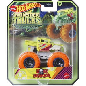 Product Description: Hot Wheels brings your fan favourite Monster Trucks to life! And the action gets more exciting when the lights go off with these Monster Trucks that glow in the dark! The Hot Wheels Monster Trucks 1:64 scale die-cast vehicles are ready for an epic battle after dark. Each metal toy truck has awesome designs, giant tires and glow in the dark elements on each side. Each pack includes a connect and crash car to ramp up the entertainment. With names like Carbonator, Battitude and Bone Shaker this series makes a fantastic gift for any Hot Wheels or Monster Trucks fan or collector. Suitable for age 3+ Features: • Monster Trucks Hot Wheels glow in the dark replica vehicle • Glow in the dark element on each side of the truck • Giant wheels with die-cast metal body and plastic parts • Monster rolling wheels for play or display • Available in a choice of models • 1:64 scale makes the truck 9.5cm long • Clamshell display packaging for collectors • Suitable for ages 3+ Specifications: • Scale: 1:64 • Material: die-cast metal body and plastic parts • Truck length: 9.5cm (3.5") • Pack dimensions: W14 x H16 x D7cm Additional Information: Warning: Choking hazard due to small parts - not suitable for children under 3 years. Glow in the dark feature will last longer if you do not expose this product to intense heat, or direct sunlight for prolonged periods of time. Place the Monster Truck approx. 152cm (5 feet) away from a light source for 30 seconds.