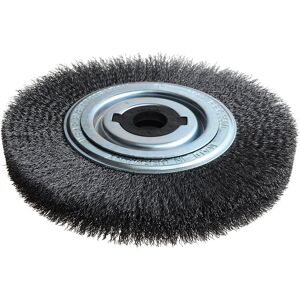 This Lessmann Wheel Brush has the following specifications: Diameter: 250mm. Width: 30-35mm. Min./Max. Bore: 20/100mm. Wire Gauge: 0.30/0.35. Wire Type: Steel Crimped. Max. RPM: 3,600. Supplied with: 1 x Set of Adaptors (Set 1). Dimensions: 30, 22.2, 20, 16 & 12mm, 1in & 1/2in. 1 x Set of Adaptors (Set 4). Dimensions: Brushes With Metal Discs Bore 50.8 & Double Keyway 7x13; Plus Adaptor to Bore 30. The Lessmann Wheel Brushes are filled with crimped wire and are used for obtaining different surface finishes. For the removal of rust, paint and dirt, for roughening, de-burring. Stripping or polishing. A decisive factor for choosing the most suitable brush is the wire and tube diameter. Brushes with a larger tube diameter are filled with more wire, are more aggressive and have a longer life. Some of the brushes are supplied with adaptor sets that allow easy mounting on all popular grinding machines. The adaptors have the following dimensions: Set 1: 30, 22.2, 20, 16 & 12mm, 1in & 1/2in.