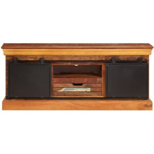 This antique-style wooden TV cabinet exudes a vintage charm and will make a great addition to your interior. The HiFi cabinet is made of solid reclaimed wood that has been sourced from joists, floors and support beams from old buildings being demolished, and can consist of different types of wood like pine, teak, beech, oak, cedar, mango wood, acacia, etc. This means the reclaimed wood retains the characteristics of these different types of wood. Reclaimed wood is already aged, weathered and dried, so it doesn't shrink or bend. This low board is fully handmade and the beautiful wood grains make every piece of furniture unique and slightly different from each other. The metal doors add the cabinet's industrial style. This sideboard features 3 compartments and 1 drawer, providing ample space for storing your multimedia appliances, books, and various other items. Equipped with 2 sliding doors, items can be easily taken in and out. The product is easy to assemble. Important note: The colours vary from piece to piece, making each piece unique. The delivery is random, ensuring the exclusivity and individuality of your product. Bloomsbury Market