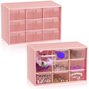 Efficient Home and Office Set: the package contains 2 pieces of small parts in desktop storage drawers with 9 clear drawers, providing ample room for storing jewelry, cosmetics, small office supplies, and collections, keeping your desk organized, and clean, bringing you efficiency and a good mood Suitable Size: this small organizer measures . 7.1inch L x 3. 9inch W x 4.7inch H, and each small drawer measures . 2.2inch L x 3.9inch W x 1.4inch H, offering ample space to store a variety of small objects, making it easy to sort, store, and retrieve your items, causing no wasted spaces and added clutter, they are not only practical but also satisfying for organizing enthusiasts Reliable and Construction: these desk organizers drawers are constructed with quality plastic, sturdy, , and reliable; They are not easy to break, deform, or wear out, with smooth surfaces, causing no harm when you are using them, and can fully meet your storage needs, you can use them for a long time Aesthetic and
