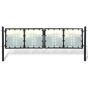 This fence gate will make a contemporarily styled, practical entryway to seclude your garden from the outside world. Highly stable and durable, the fence gate will form a practical security barrier for your garden, patio or terrace. The galvanized sheets with decorative hole patterns reinforce the frame, so our garden gate will provide a high degree of security, while forming a fabulous entryway onto your property. Manufactured from heavy-duty steel, the gate is powder-coated against rust and corrosion. This gate has two solid posts with sturdy hinges for easy installation, and a heavy-duty locking system with three matching keys are also included in delivery. This garden gate is a great combination of style, strength, stability and corrosion resistance! Colour: Black Material: Steel with a powder-coated finish Overall gate size: 300 x 150 cm (W x H) Single gate panel size: 141 x 100 cm (W x H) Post height: 150 cm Heavy-duty lock with 3 matching keys (included) 2 posts with sturdy