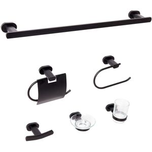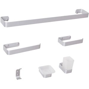 Modern Bathroom Hardware Set. Bring style to your bathroom with this elegant aluminium hardware set in a glossy finish. Featuring a towel bar, a towel hook and ring, and dedicated holders for a soap dish, tumbler, and toilet roll, this set provides everything you need to keep your space neat and organised. Its elegant design complements any décor, and the included soap dish and tumbler add practical touches for daily use. Details: Product Type: Bathroom Hardware Set Style: Modern General Color: Gold Material Type: Metal Main Material: Aluminium Additional Material: Glass Finish: Gloss Dimensions: Depth: 7 cm Width: 60 cm Height: 5 cm Overall Dimensions: 60x7x5 Weight: 1.5 kg Weight Capacity: 10 kg Offer Includes: 1 x Towel Bar, 1 x Towel Ring, 1 x Towel Hook, 1 x Soap Dish Holder, 1 x Tumbler Holder, 1 x Soap Dish, 1 x Tumbler, 1 x Toilet Roll Holder Key Features: Modern Design, Blends Well with Any Decor, High-Quality Materials, Unique Handmade Piece, Secure Mounting Thanks to