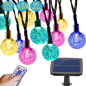 Aenamer Outdoor solar string lights with 50 warm white LED bulbs. Light up your patio, lawn, garden, pergola, bistro, etc., create a fantastic atmosphere. Auto On/Off The solar panels can effectively absorb sunlight. The bulbs can work for more than 8 hours when fully charged. Light sensor function automatically turns off at dawn and turns back on at dusk. Specification Light color : warm white Bulb quantity: 50 crystal ball lights Solar rechargeable battery: 1200mAh Charging time: 6-8 hours Working time: 35-90 hours Working temperature: -20°C to +60°C Switch: remote control Lighting mode: 8 modes, 4 brightness Total length: 9.5m / 56ft Package Include Solar string lights with 50 LEDs Solar panel*1 Remote control*1 User manual*1 Tip of 20*1 Q: Why the string lights don't turn on automatically at night 1. Please make sure the solar panel is charged. When charging in the sun, be sure to turn on the ON button of the solar panel, otherwise it cannot be charged. When charging in the sun,