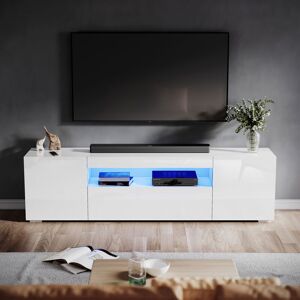 About this item: Brand ELEGANT Colour White Product Size 1800x350x490mm (WxDxH) RGB LED Light 16 color LED Ambient lights Sufficient Storage Space TV cabinet with three cabinets and an open storage space Suitable for (TV) LCD,Flat,LED TV etc Suitable for (place) Living room.study room,bedroom LED Cabinet with 16 colours & 4 dynamic modes 16 color LED Ambient lights and 4 dynamic modes system, Remote control ON/OFF and color control, Create wonderful atmosphere, Let you and your family in this wonderful atmosphere, Happily watching TV, playing games, watching movies, watching ball games. Features: ⭐16 colour LED lights system with remote ON/OFF and 4 dynamic modes of color control. ⭐LED TV Stand features with 16 colour ambient Light,which adds unique charm to your house. ⭐TV cabinet with three cabinets and an open storage space,which provide ample storage space and you are able to put things like TV box,DVD player,speakers,games console in it. ⭐The Television stand is constructed by