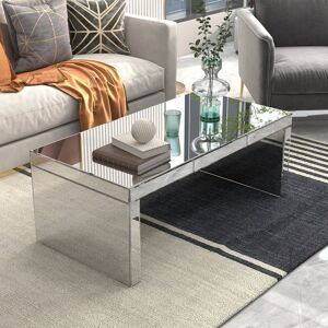 Add instant glamour to your living room or studio apartment with this silver rectangle sledge coffee table. Clear reflective silver mirror surface visually magnifies the space, adding dimension to spaces, and it is durable and easy to maintain since the mirrored surface is easy to clean and use. The mirrored coffee table will add a contemporary touch to any room in your home. With clean lines and a unique design, this glass coffee table showcases a distinctive style. Blue Elephant