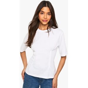 Flattering cinched waist design creates a feminine silhouette Soft cotton blend fabric with slight stretch for all-day comfort Classic crew neckline for a timeless look Elbow-length sleeves offer versatile seasonal styling Subtle side seam detailing adds interest to this wardrobe staple This Cotton Cinched Waist T-shirt from Boohoo combines everyday comfort with figure-enhancing style. The clever waist detailing creates definition whilst maintaining the casual ease of your favourite tee. Perfect for pairing with striped bottoms as shown for a nautical-inspired daytime look, or dress it up with a midi skirt and trainers for weekend brunches. The versatile design works brilliantly layered under cardigans or jackets when temperatures drop, whilst the cotton-rich fabric ensures breathability for warmer days. This adaptable piece transitions effortlessly from casual coffee dates to family gatherings - simply customise with your favourite jewellery and accessories to suit the occasion. A true wardrobe hero that delivers on both comfort and style.