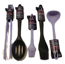 This 3 piece Colourworks utensil set includes a purple cooking spoon, red slotted turner and a green spatula. Made from food safe BPA free silicone with a tough nylon core and a high quality coating, perfect for using with non-stick cookware the silicone utensils will not scratch or damage your cookware. The smooth shaped handles feature a textured handle for a firm grip and a hanging loop for easy hanging. The silicone utensils are heat resistant up to 260°C and is also suitable for dishwasher cleaning. Complete with a manufacturers 5 year guarantee.
