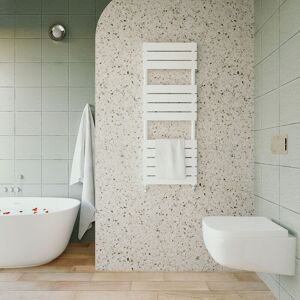 Upgrade your home heating with our high-quality Towel Rail Radiator, designed to combine elegance with functionality. This radiator not only keeps your towels warm and fluffy but also enhances the aesthetic appeal of your bathroom or living space. Unique hot water circulation structure Suitable for all UK heating systems High quality 1.5mm thick mild steel High heat output 15 years warranty 1/2" inlets and outlets Bottom Inlet position and Outlet position Wall-mounted orientation *Note: Brackets and fixings included. *Valves are not included. Technical Information: Model: Towel Rail Radiator Product dimension: 1200 x 450 x 46.5 mm ( H x W x D ) Product weight: 12.95kg Colour: White Material: Mild steel BTU: 2319 Wtt: 680 Bars: 12 Accreditation: Triple layered finish to exceed 200 hours of neutral acid salt spray testing. Tested to BS & EN442 Complies with ISO9001:2008 regulations. Efficient and uniform heating The radiator can quickly transfer heat to the room through the internal