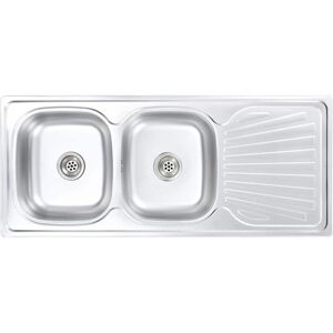 This quality kitchen sink has two sizable basin with an extended drainboard on the side. It is delivered including the strainer and trap and will be a great choice for your kitchen. Made of quality stainless steel, this kitchen sink is scratch & impact resistant and highly durable. It is also dirt-repellent and stain resistant, thus easy to clean. This kitchen sink is a space saver that will leave your more counter space. The extra-deep basins have ample space for large pans and dishes, and the double feature creates an entirely separate area for you to use. The drainboard will come in very handy not only when washing dishes by hand but also as an extra place for cutting vegetables. The rectangular sink can be assembled with the drainboard either to the left or right. Delivery also includes the strainer and trap. Colour: Silver Material: Stainless steel with a brushed finish Overall dimensions: 120 x 50 x 16 cm (L x W x H) Double basin design Complete with strainer and trap Sound