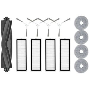 1. new, high-quality materials, well-made, , and highly matched to the equipment. 2. Clean accessories enable your home robot to maintain optimal performance. Accessory contents are easy to remove and replace as part of routine maintenance. All while reducing dust, pollen and other allergens from seeping into the air you breathe. 3. In order to achieve the best cleaning and filtration effect, cleaning accessories should be replaced every 2-3 months according to the frequency of use. 4. The function of the sweeping robot filter is to filter dust, dirt and other impurities inhaled by the sweeping robot to keep the robot clean and running normally. The filter also prevents dust and dirt from entering the robot's motors and other parts, extending the robot's lifespan Colour:As Shown Material:plastic Package Contents: 1 x Main brush 4 x Side brush 4 x Filter 4 x Mop Cloth Only the above package content, other products are not included. Note: Light reflection and different displays may