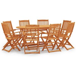 Wallplus Ltd 9 Piece Folding Outdoor Dining Set Solid Eucalyptus Wood