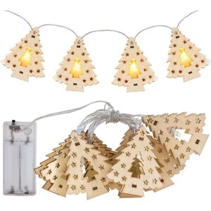 Let yourself be carried away by fantasy and make this holiday intriguing, thanks to our unique hanging lights for wooden LED Christmas trees. Feel the magic of Christmas. Decorate your home, company, hotel, shop in a unique way. Lamps are a perfect decoration inside the house. They will be a unique Christmas accent and an original decoration that will delight everyone. The set of lights consists of 10 hanging LED Christmas trees measuring 5.5 cm. The length of the garland is 110 cm. The lamps are powered by 2 AA batteries (not included) Technical parameters: Tightness class: Lack of information Number of LED lamps: 10 Lamp lighting section: 90 cm Supply section: 30 cm Power supply and current consumption: AA x2 battery Approvals: CE