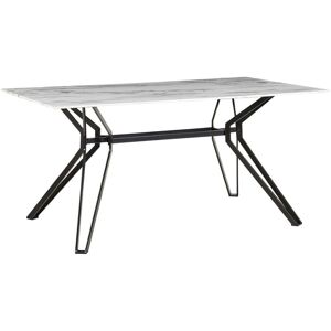 Rectangular Dining Table. Enhance your dining area with this rectangular table. Made out of easy-care, durable tempered glass, which has attention drawing veneer on the tabletop, that resembles white marble, making the piece stand out. The whole construction is placed on black, metal legs, that thanks to their design, reinforce the contemporary look of the product. It will easily fit up to 4 people, giving each of them plenty of space while in use. Details: Product Type: Dining Table Style: Modern General Color: White, Black Material Type: Glass Main Material: Tempered Glass Additional Material: Iron Legs material: Metal Top Material: Glass Shape: Rectangular Finish: Veneered Seats Up To: 6 People Dimensions: Width: 90 cm Length: 160 cm Height: 76 cm Weight: 53 kg Weight Capacity: 100 kg Offer Includes: 1 x Table Key Features: Elegant Design, Modern Marble Effect Finish, Exceptionally Low-Maintenance, For Best Care, Protect Against Heat and Moisture with Coasters and Placemats, Stable