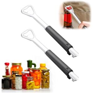 【High Quality Material】Adjustable jar opener is made of stainless steel and with a strong hard plastic handle, which ensures its durability. will not be deformed under the influence of great force and will not be damaged even after years of use. The can opener also protects your hands from injury. 【Effortless Jar Opener for Arthritis】Manual Lid Opener features a gear design that makes it easy to turn and open cans in seconds. This specially designed tool is designed to help people with weak hand strength, arthritis, or limited grip, allowing them to easily open a variety of jars and bottles. 【Space Saving】Adjustable jar opener has an opening range of 1cm to 10cm and can be adjusted to fit the size of the bottle cap, it has a built-in hanging hole at the end for hanging on a hook, it is very easy to store and will fit perfectly in any kitchen drawer, saving space! 【Easy to Use】Multifunctional Lid Opener is very easy to use. Open the opening of the glass lid opener and place it on the