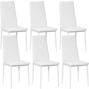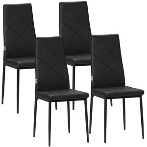 Sleek and simple style, with a small stand-out point: these dining chairs from HOMCOM. Each is wrapped in PU leather, with covered in a diamond-shaped pattern for extra flair. Seat is filled with cushion for comfort, whilst the high back offers support. The powder coated steel legs are strong, so they keep you fully supported when sitting. Set of four for a matching look in your dining and kitchen areas. HOMCOM Modern Dining Chairs Faux Leather Accent Chairs for Kitchen in Black