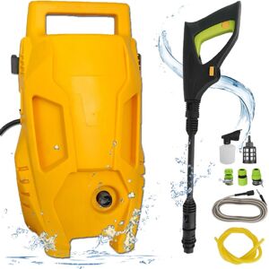 【 Power Pressure Washer 】 4000W Power Pressure Washer delivers 110bar of working pressure and 5.5L/Min of water flow for fast cleaning. Fitted with a 7 metre high pressure hose for flexible use over large areas. Multiple hooks make it easy to handle a variety of cleaning tasks and provide extra storage space for all accessories. 【 2-in-1 Adjustable Nozzle 】 Easily switch between small-scale concentrated high-pressure cleaning and large-scale spraying for versatile cleaning of cars, bicycles, terraces, gardens, lawns, and more. 【 Compact and Lightweight 】 Weighing just 3.5kg and 39.8cm tall, this pressure washer is easy to carry wherever you need to clean. Its compact design makes it easy to store, taking up little space in a storage cupboard, shed or garage. 【 Wide Application 】 Ideal pressure washer for removing stubborn dirt from outdoor home surfaces, gates, benches, garden furniture and equipment, bikes, motorbikes, cars, steps and swimming pools. It is also ideal for cleaning