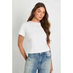 Scuba crepe fabric offers a structured yet comfortable fit that maintains its shape throughout the day Elegant cinched tie back detail creates a flattering silhouette with adjustable definition Classic crew neckline provides a timeless finish suitable for various styling options Short sleeves design perfect for transitional weather and layering versatility Cropped length sits perfectly with high-waisted bottoms for a balanced proportion This Boohoo Scuba Crepe Cinched Tie Back Top combines simplicity with thoughtful design details for effortless everyday style. The structured fabric creates a clean silhouette while the tie-back feature adds a feminine touch that can be adjusted to your preference. Style with relaxed wide-leg jeans and trainers for casual coffee dates, or pair with a midi skirt and ballet flats for family gatherings. The versatile design works brilliantly layered under cardigans or denim jackets when the temperature drops. For a complete daytime look, accessorise with minimal jewellery and a crossbody bag as seen on our model. This top offers the perfect balance between comfort and style, making it an essential addition to your casual wardrobe that can be dressed up or down depending on the occasion.